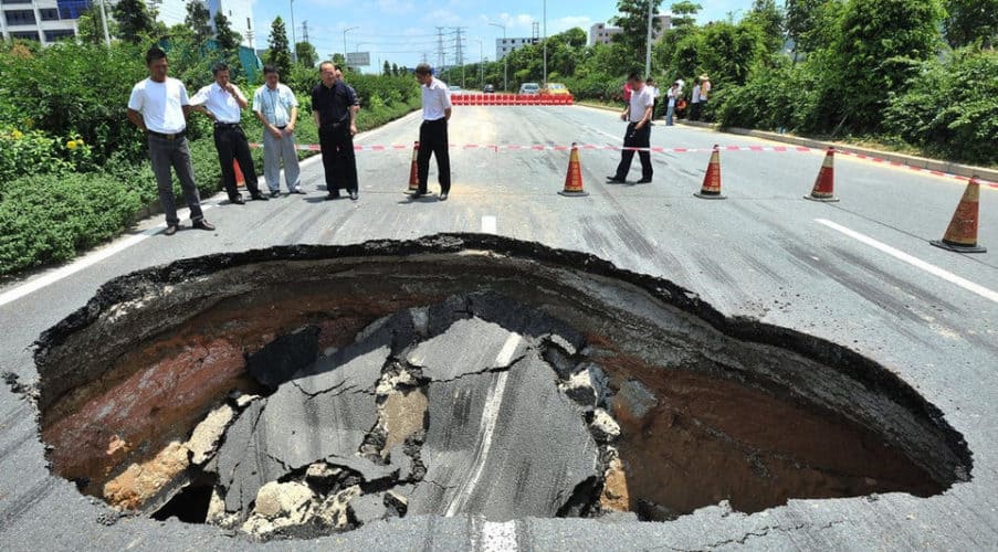 A cavity generally means any space inside a solid object. A sinkhole is a cavity in the road.
